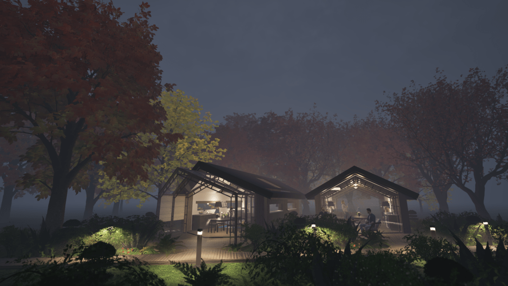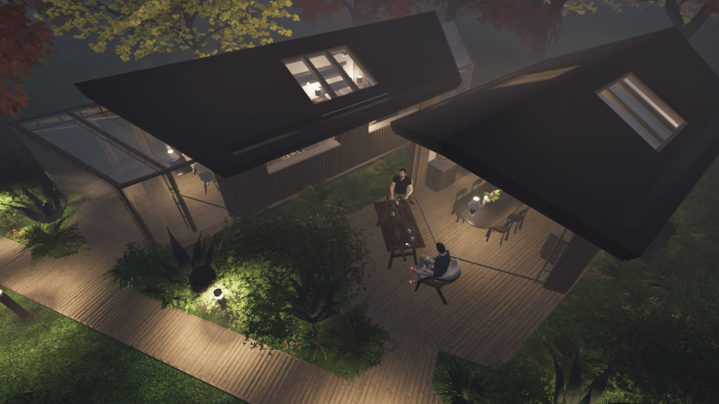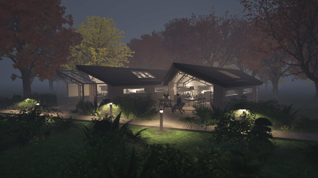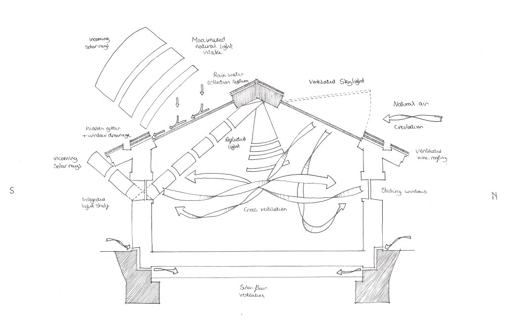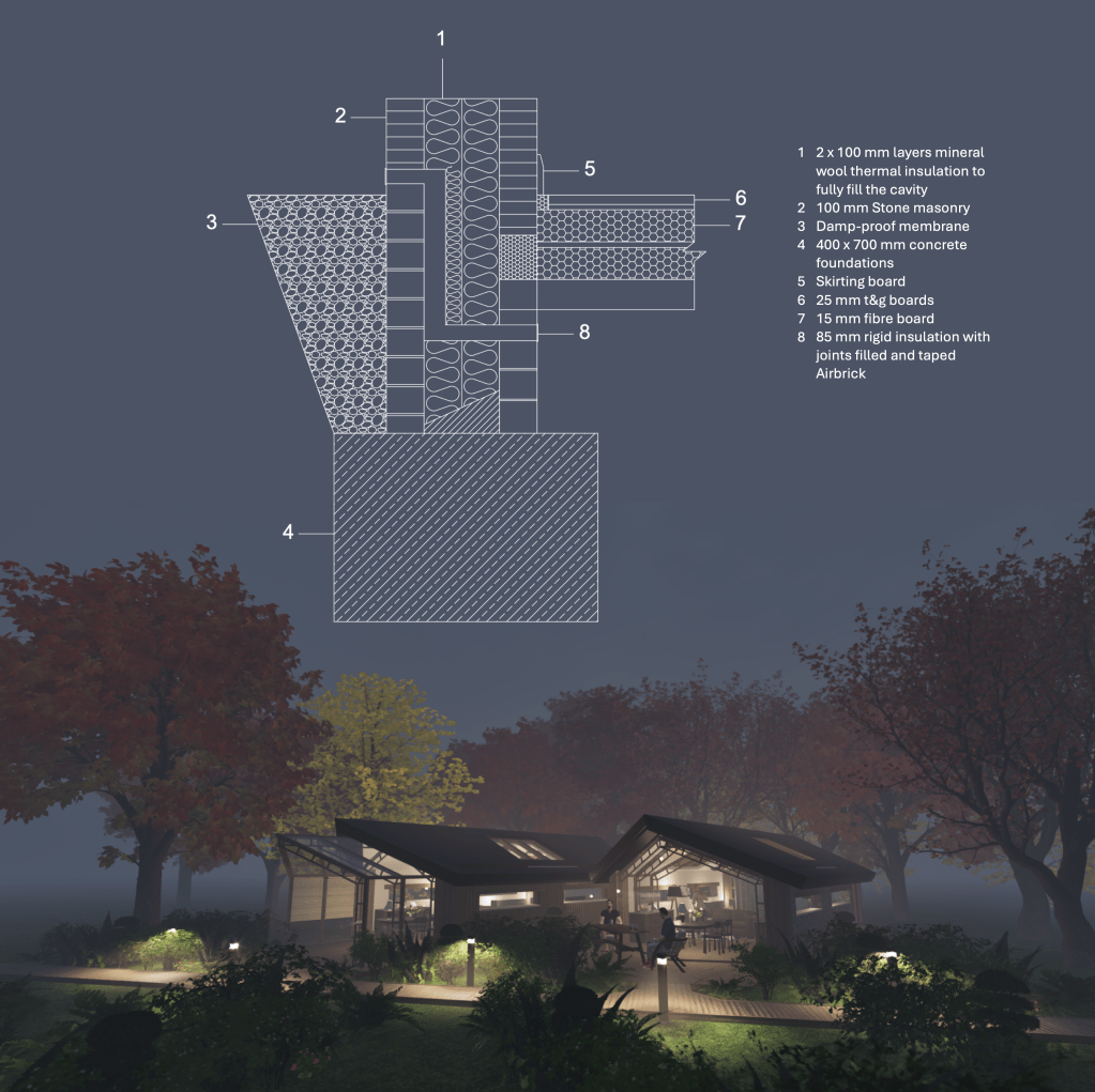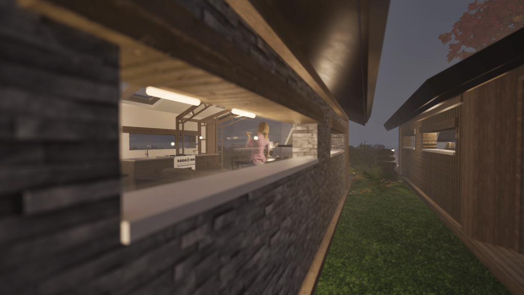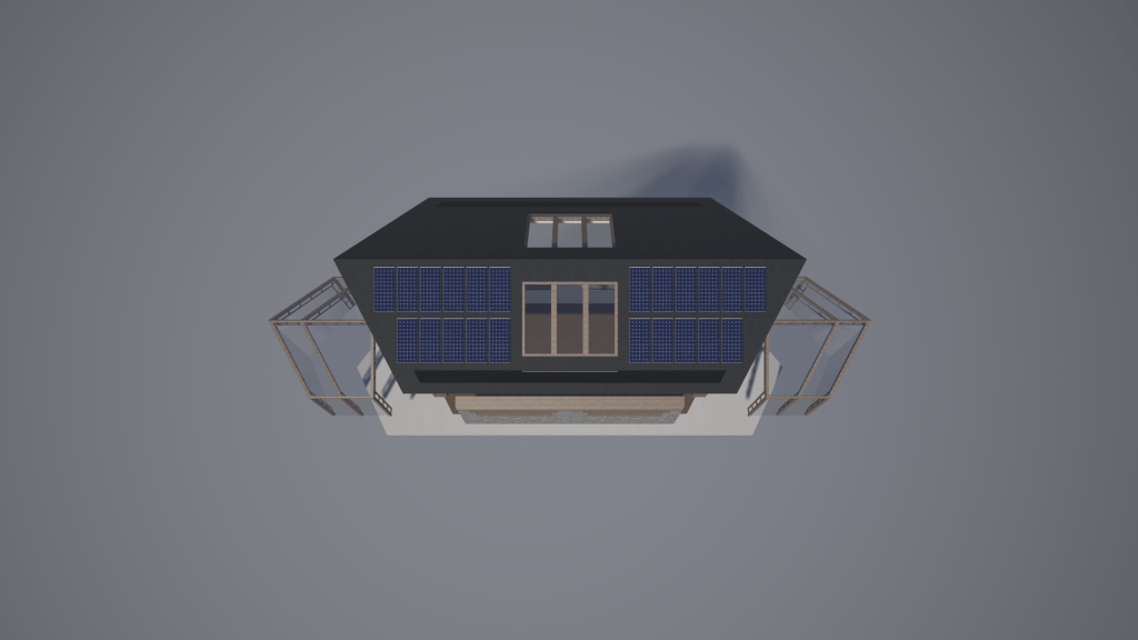 Lighting was a careful consideration when it came to deciding on the construction of the Keystones. The thin, narrow slits for windows on the north and south façades allow for some light to penetrate within the house, whilst the larger eastern and western ends are almost entirely glass facades. To increase control on of the internal temperature, skylights were implemented with the function to open almost fully, venting the structure. The doors on the glass modules can also be opened to increase natural ventilation. For winter heating, ground source heat pumps are utilised to increase sustainability and to reduce costs.